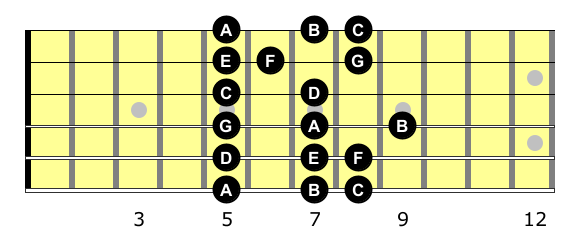 Looking at the natural notes gives you the C major scale pattern at the fifth fret position.